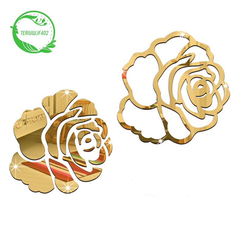 V) Diy Stiker Dinding Model Cermin Dengan Bahan Akrilik Dan Gambar Bunga Mawar 3d Warna Emas | Shopee Indonesia
