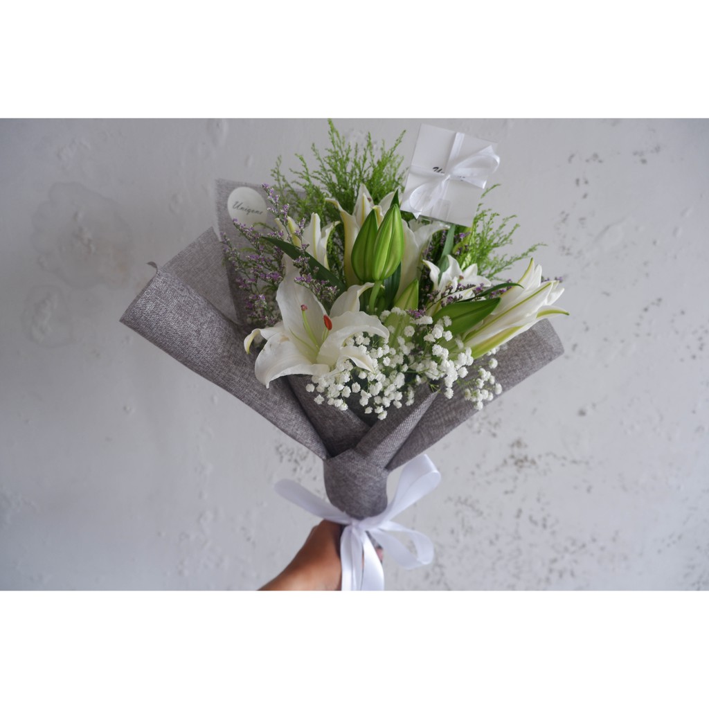 Lily Whites Bouquet / Buket Bunga Wisuda / Buket Bunga Lily Putih / Rangkaian Bunga Lily | Shopee Indonesia