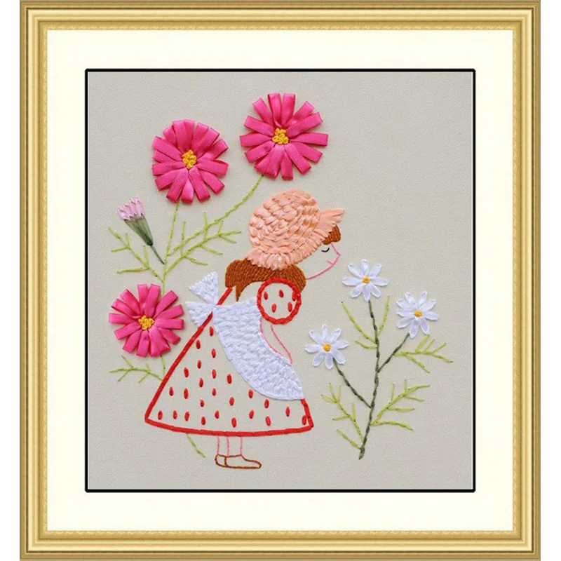 Baru lukisan sulam pita sederhana untuk pemula kartun kamar anak dicetak non cross stitch bunga gadis hadiah|embroidery for beginners|embroidery ribbonembroidery painting - AliExpress
