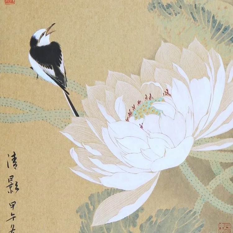 Cina Sutra Cat Air Tinta bunga dan burung Bulbul Putih Lotus feng shui art dinding gambar damask framed kanvas lukisan gulir|canvas painting|wall picturescanvas painting framed - AliExpress