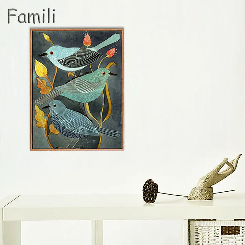 Kisah Burung Bulbul dan Tanaman Hewan Burung Lukisan Minyak Di Dinding Kanvas Gambar untuk Ruang Tamu Rumah Dekor-in Painting & Calligraphy from Rumah & Taman on AliExpress