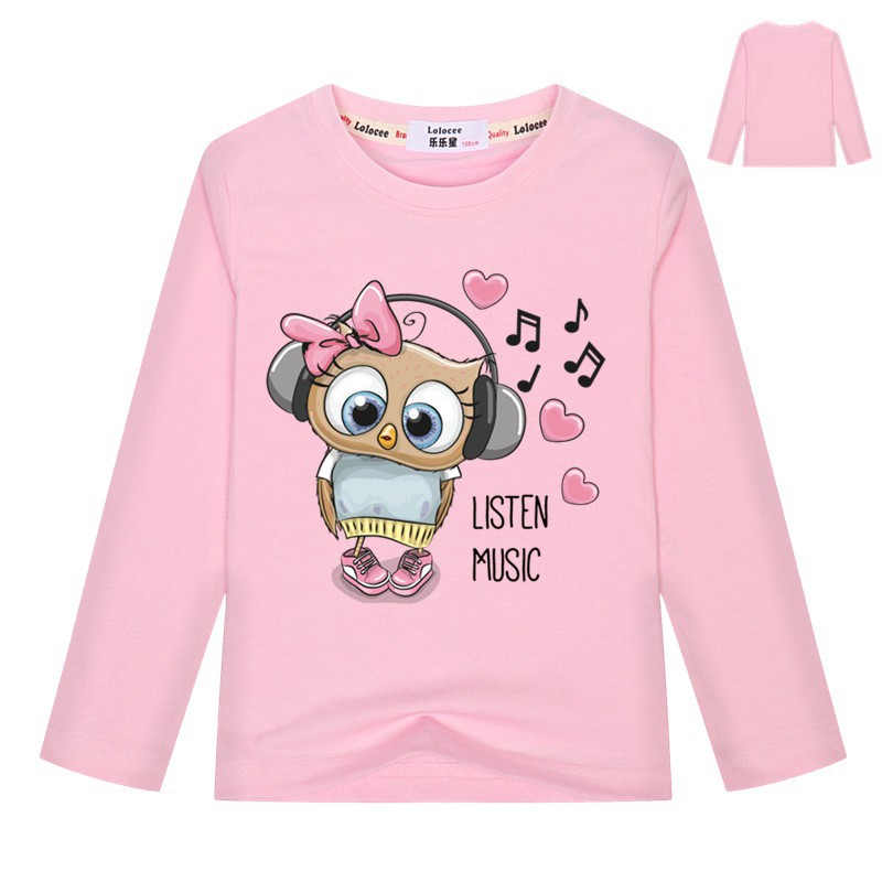 Kaos T-Shirt Katun Anak Perempuan Lengan Panjang Gambar Burung Hantu Lucu untuk Musim Semi | Shopee Indonesia