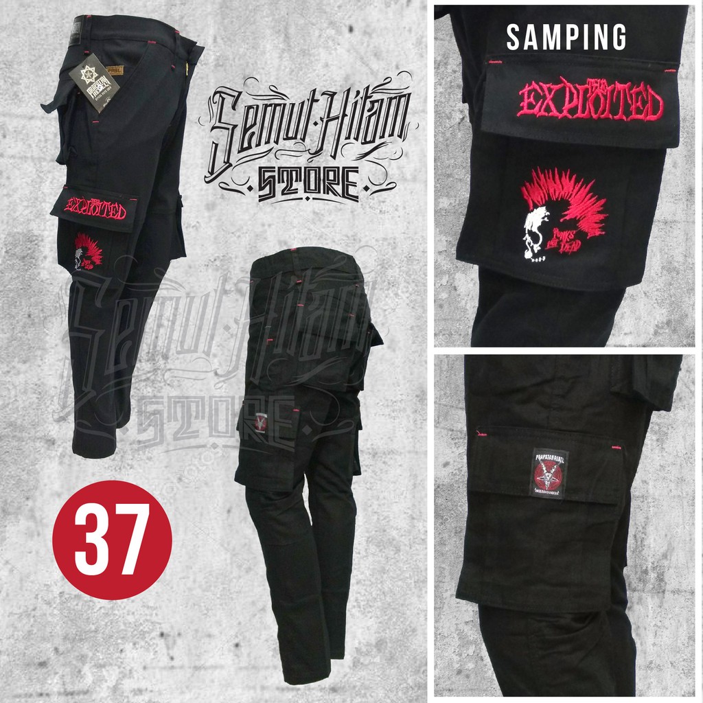 Celana Panjang Cargo / Kempol Panjang Alpin PDL Hitam Bordir Band Musik Metal / Punk Prapatan Rebel | Shopee Indonesia