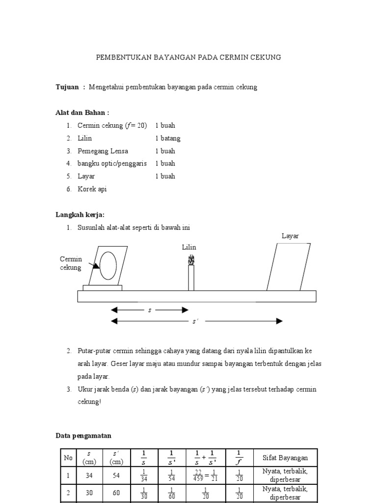 Laporan Fisika: cermin cekung