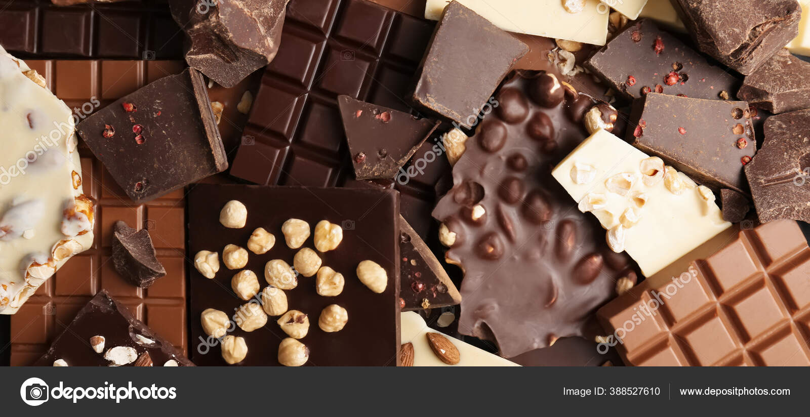 Banyak Coklat Lezat Bar Sebagai Latar Belakang Top View Desain — Stok Foto © liudmilachernetska@gmail.com #388527610