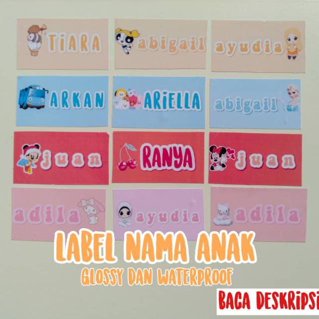 LABEL STIKER NAMA ANAK LUCU // glossy dan waterproof // bisa custom gambar dan warna | Shopee Indonesia