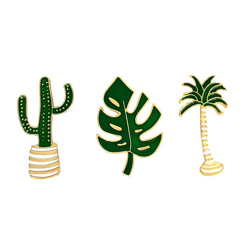 Fashion Sederhana Kartun Hijau Tanaman Kaktus Daun Kelapa Pohon Bros Pin Enamel Tombol Kerah Pin Lencana Kerah Jaket Denim Perhiasan|Bros| - AliExpress