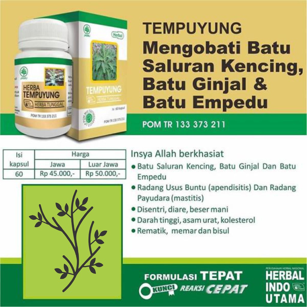 KAPSUL DAUN TEMPUYUNG HERBAL INDO UTAMA, OBAT BATU GINJAL EMPEDU SALURAN KENCING HERBAL | Lazada Indonesia