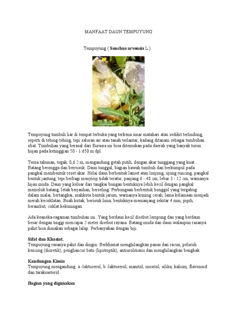 DOC) 100 Manfaat Daun Tempuyung Menurut Ahli Kesehatan | mas Ariess - Academia.edu