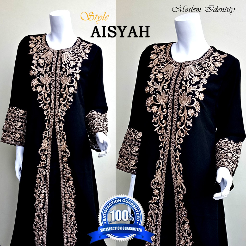 Gamis Abaya Hitam eklusive, Gamis Pesta Bordir, Abaya Arab S- Aisyah | Shopee Indonesia
