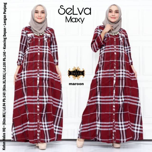Selva maxy motif kotak full kancing busui | Shopee Indonesia