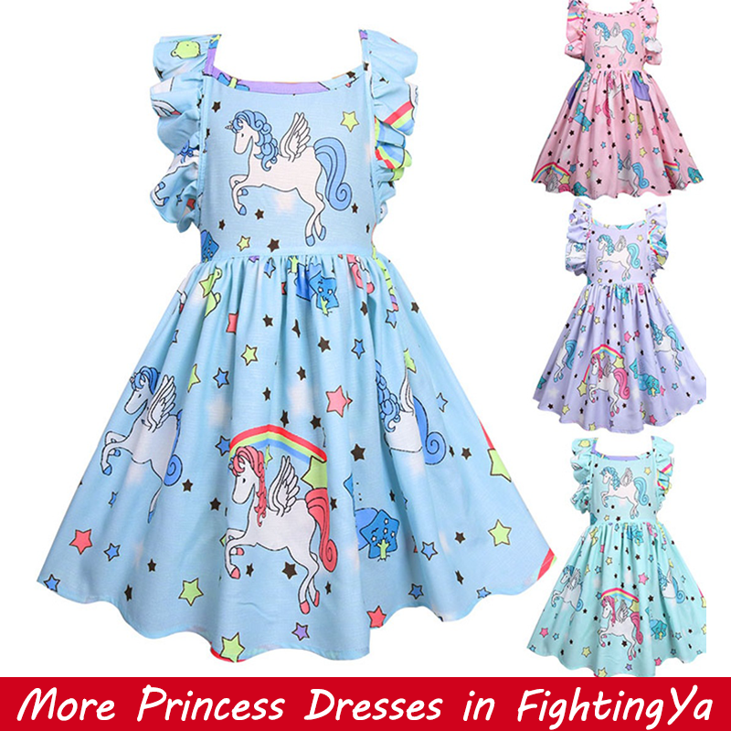 Gaun Pesta dengan Gambar Kartun Unicorn Warna Pelangi untuk Anak Perempuan | Shopee Indonesia