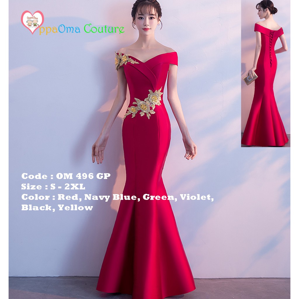 Gaun pesta modern elegan merah model duyung oppaoma OM 496 GP | Shopee Indonesia