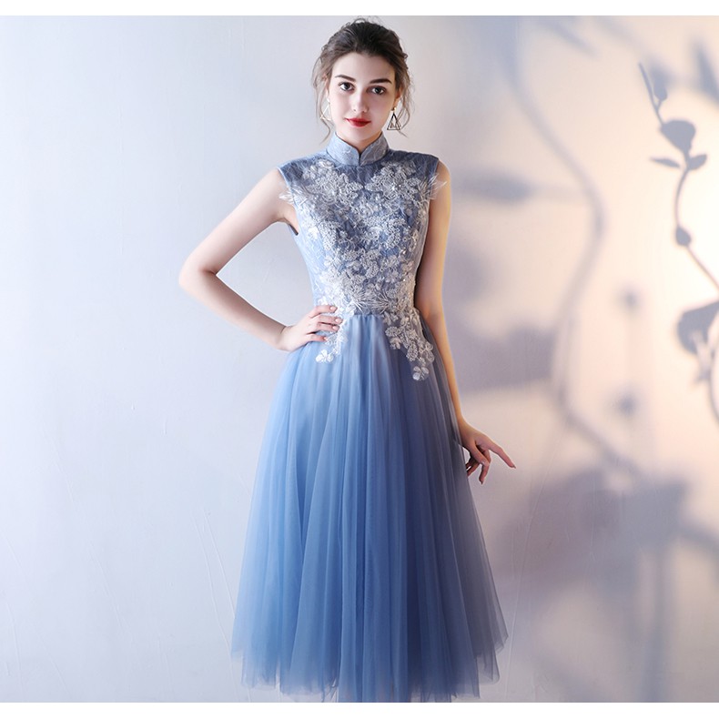 CW-677 Dress impor elegan gaun pesta biru gaun malam dress formal kasual good quality | Shopee Indonesia
