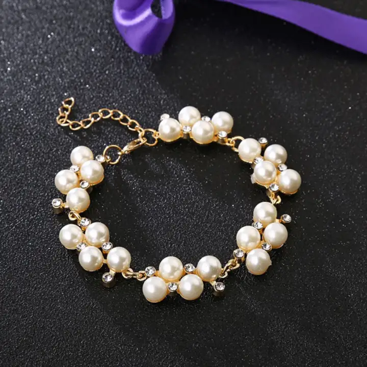 Fashion Wanita Berlian Imitasi Aksesoris Emas Warna Gelang Kristal Gelang Manik-manik Mutiara Imitasi Mutiara Simulasi | Lazada Indonesia