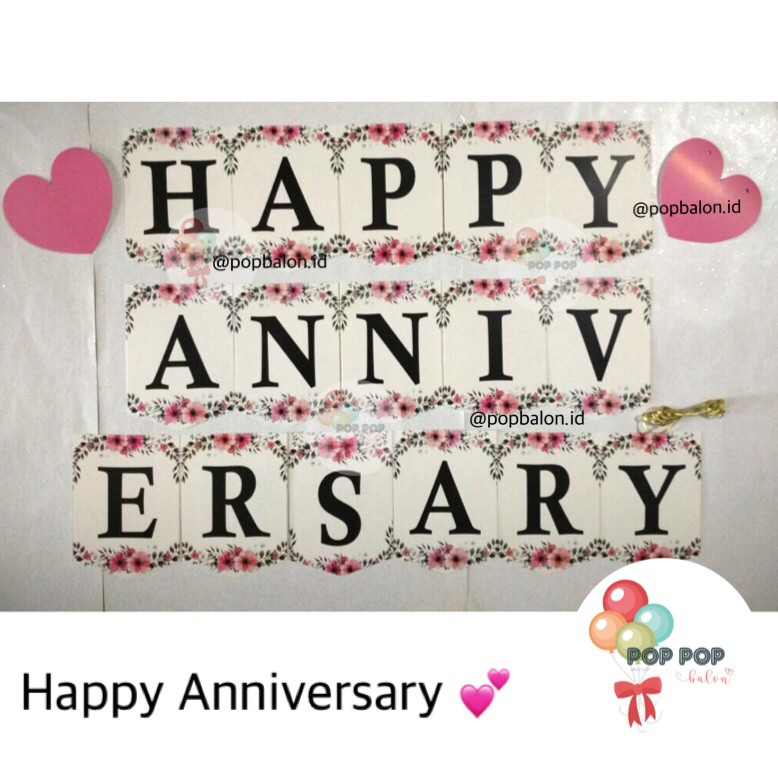 Banner Flag/Bunting Flag Happy Anniversary motif Bunga Putih Love | Shopee Indonesia