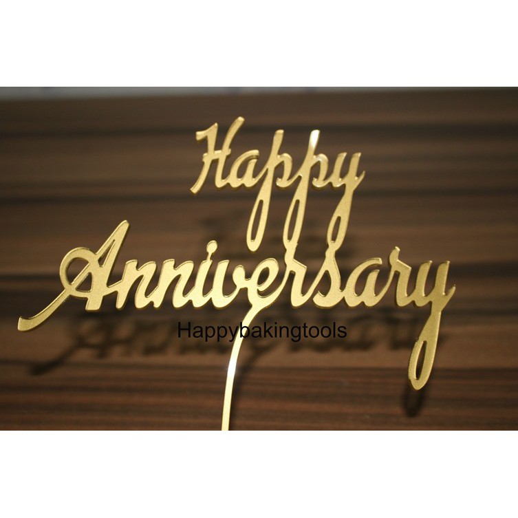 Topper kue happy anniversary gold, hiasan cake, hiasan kue ulang tahun | Shopee Indonesia