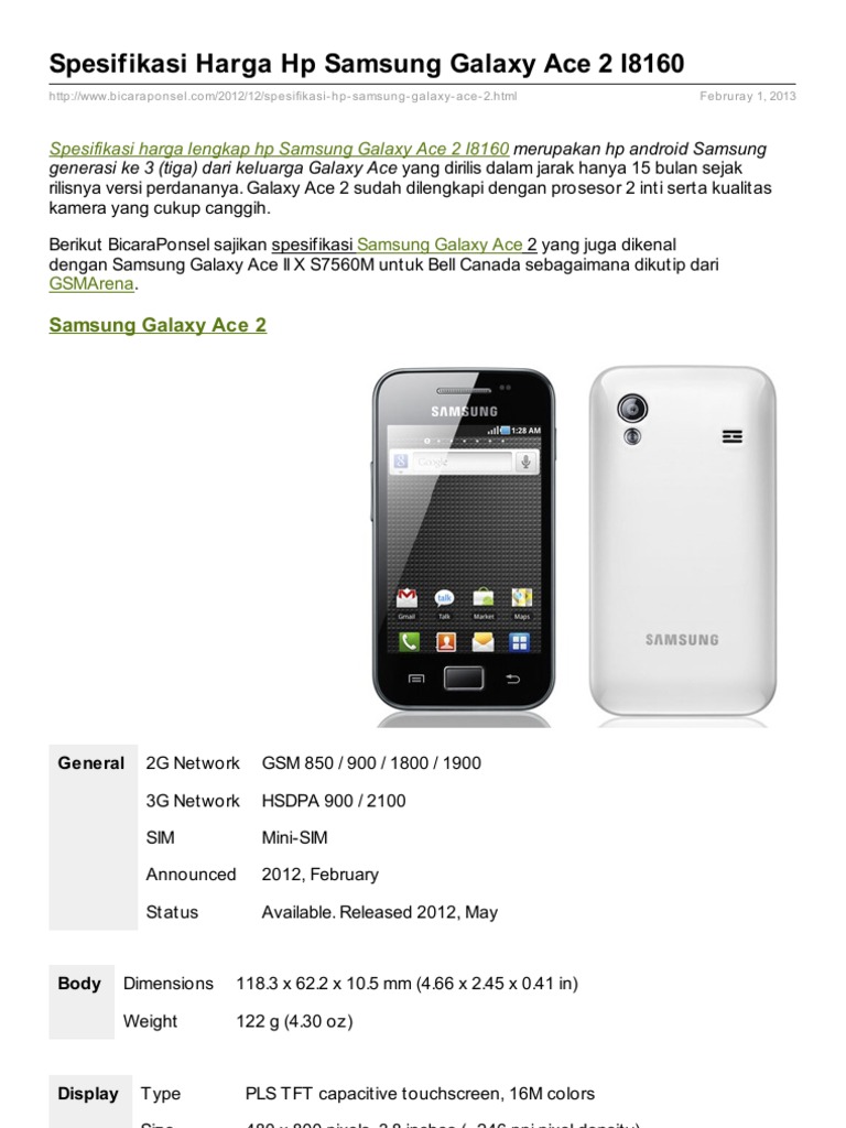 Spesifikasi Harga Hp Samsung Galaxy Ace 2 I8160