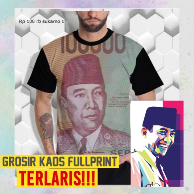 KAOS COWOK / KAOS FULL PRINT / KAOS PERJUANGAN / KAOS 3 DIMENSI / SOEKARNO / KAOS UANG / 100 RIBU CP | Shopee Indonesia