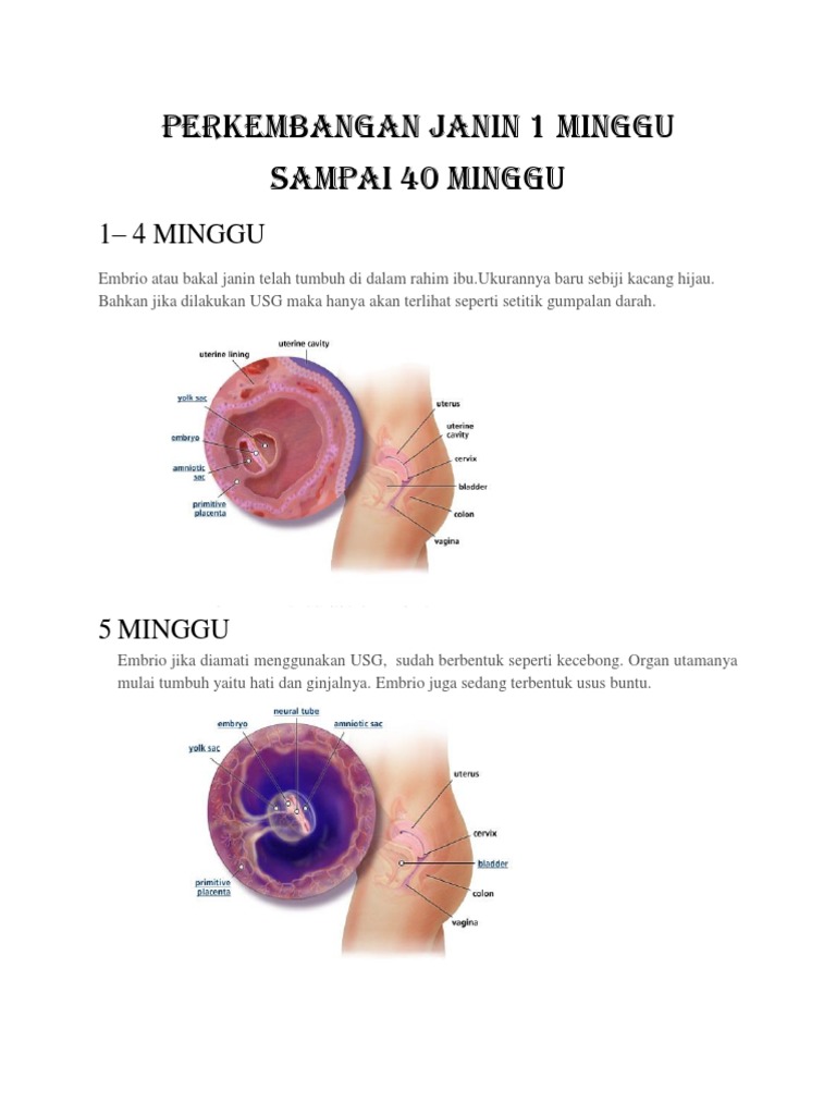 Perkembangan Janin 1 Minggu Sampai 40 Minggu