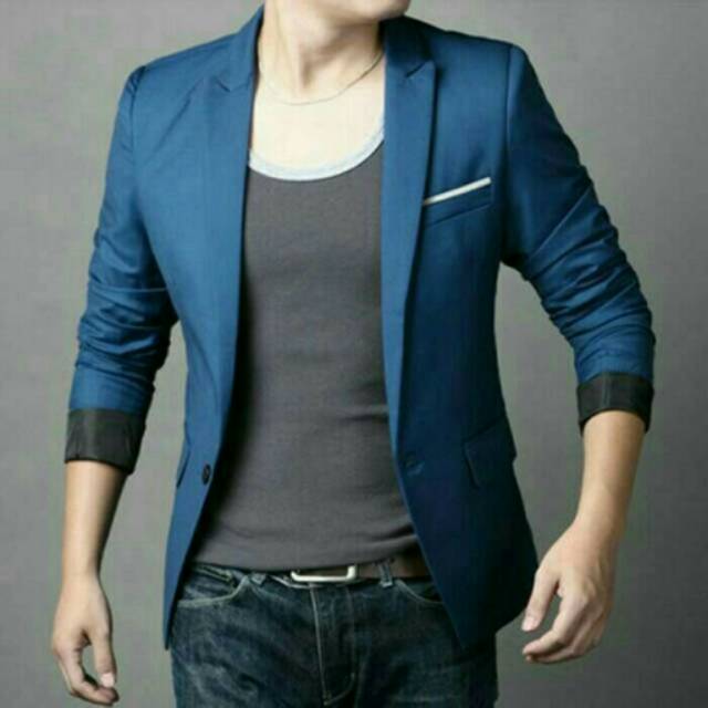 Jas resmi, jas santai, blazer pria, blazer korea murah, blazer warna biru, blazer casual | Shopee Indonesia