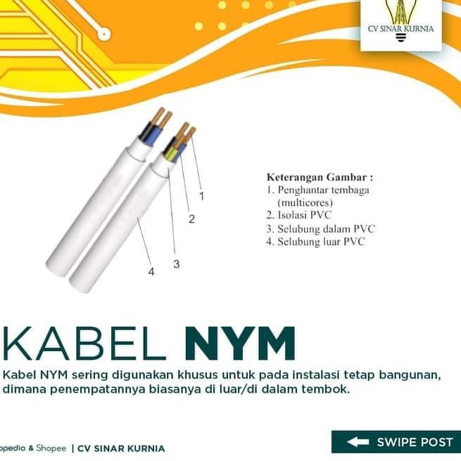 Added by @cvsinarkurnia Instagram post Kabel NYM-HYO tidak diperuntukkan instalasi listrik arus besar, hanya digunakan untuk arus rendah saja, seperti kabel soundsystem, kabel pada rangkaian elektronika, audio video, dan sebagainya. Kabel ini