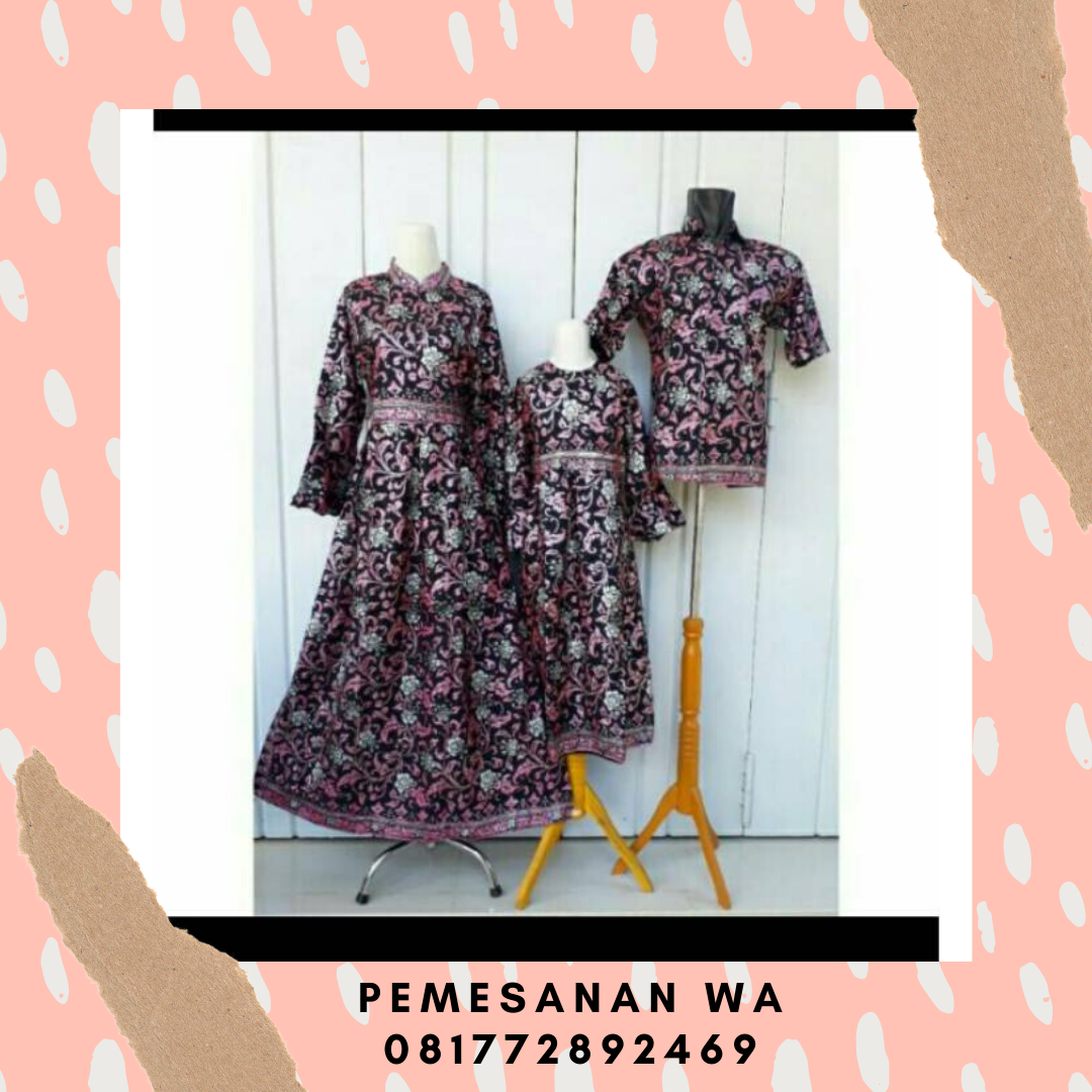 Modern Batik Couple Surakarta: Setelan model baju gamis batik couple keluarga sarimbit kombinasi kemeja lengan pendek bahan katun prada
