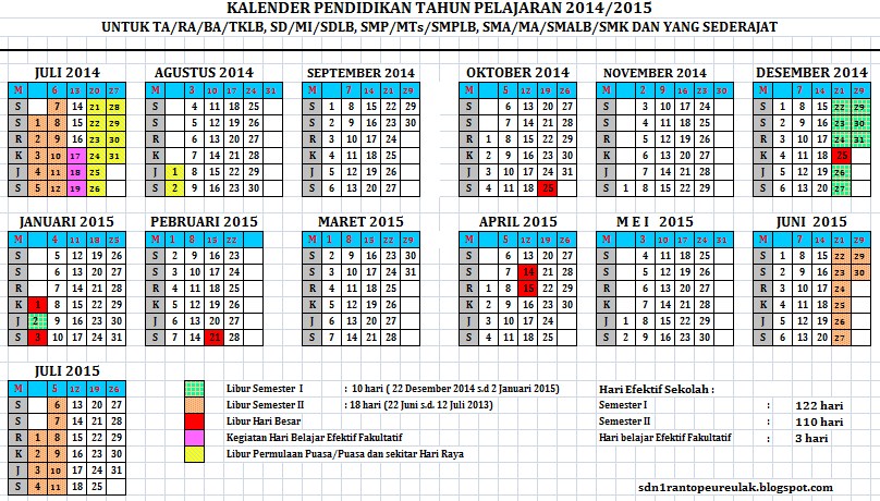 KALENDER PENDIDIKAN TAHUN AJARAN 2014/2015 : SDN 1 RANTO PEUREULAK