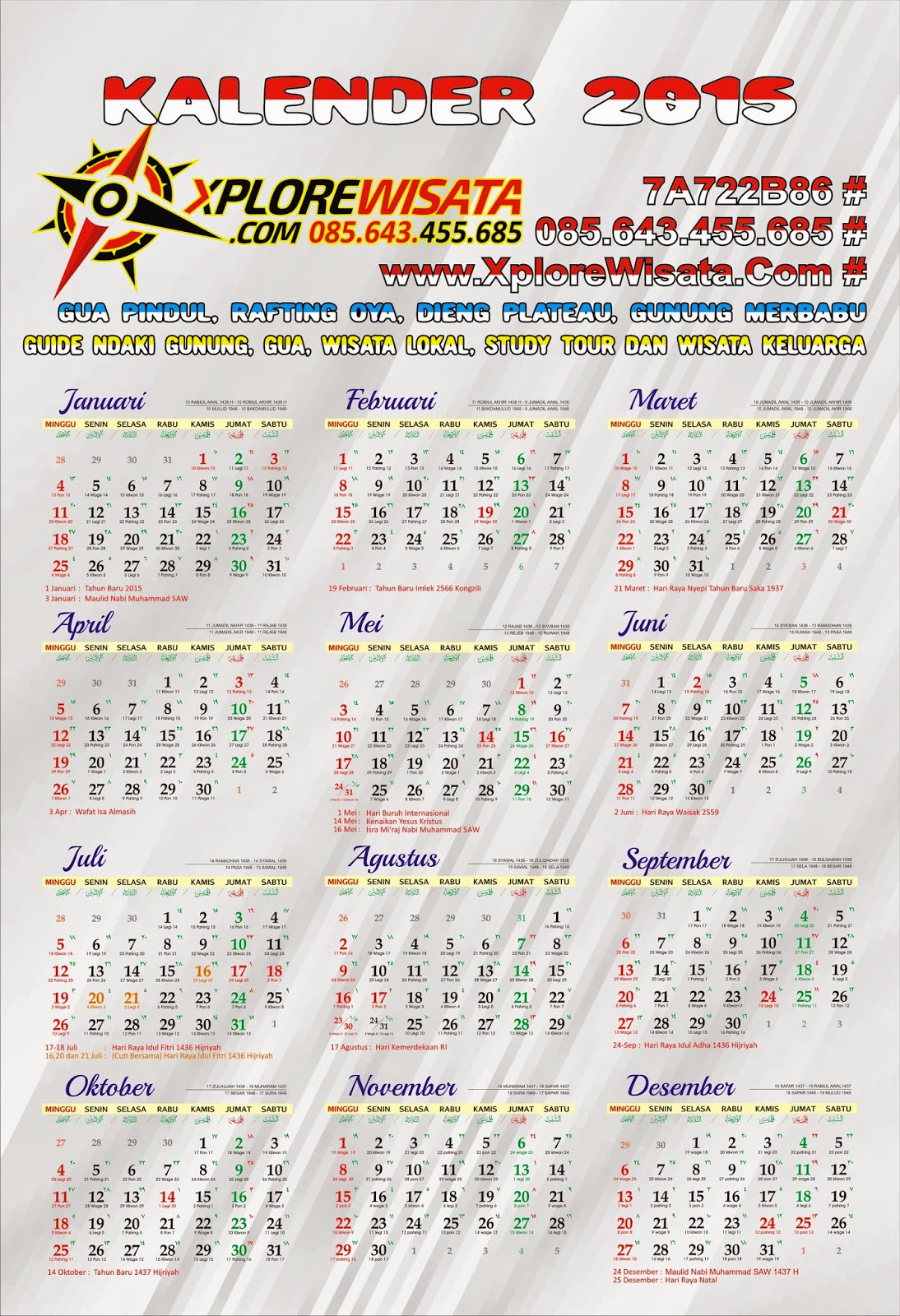 Kalender 2015 - Xplore Wisata !! Operator Wisata dan Provider Pendakian Gunung