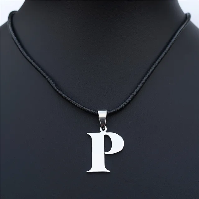Alphabet J Stainless Steel Huruf Liontin Kalung Fashion Pria Perhiasan dengan Kabel Hitam|necklace with|fashion necklacenecklace fashion - AliExpress