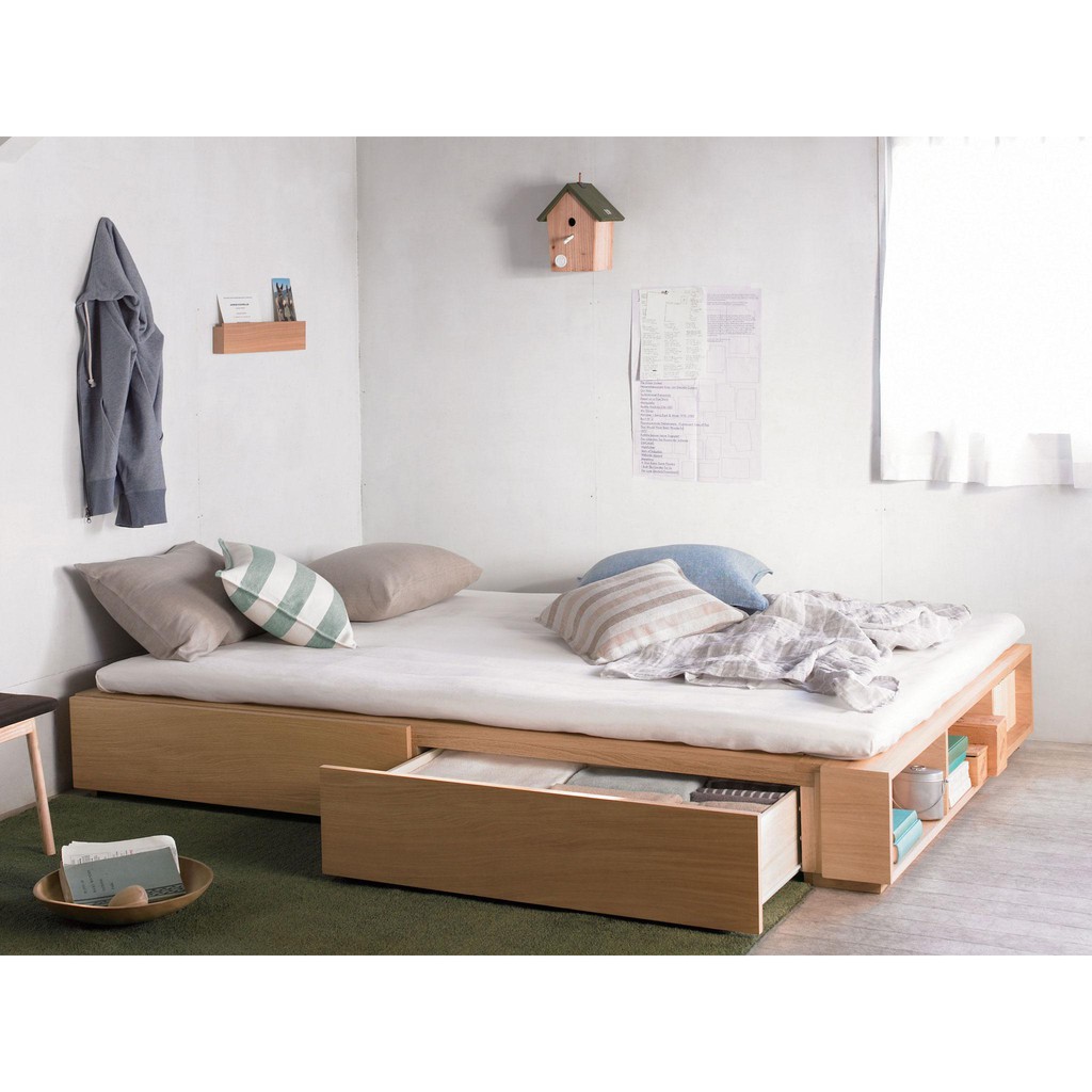 Tempat tidur minimalis modern laci, 2, bahan kayu jati tua terbaik - Perlengkapan Rumah - 800450026