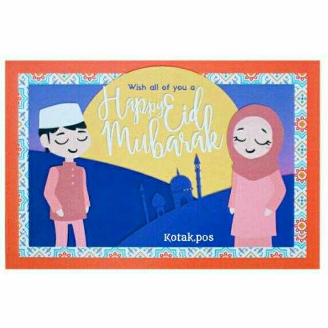 HAPPY EID MUBARAK (Cartoon) KARTU POS LEBARAN POSTCARD POSTCROSSING SURAT FILATELI MURAH GROSIR UNIK | Shopee Indonesia