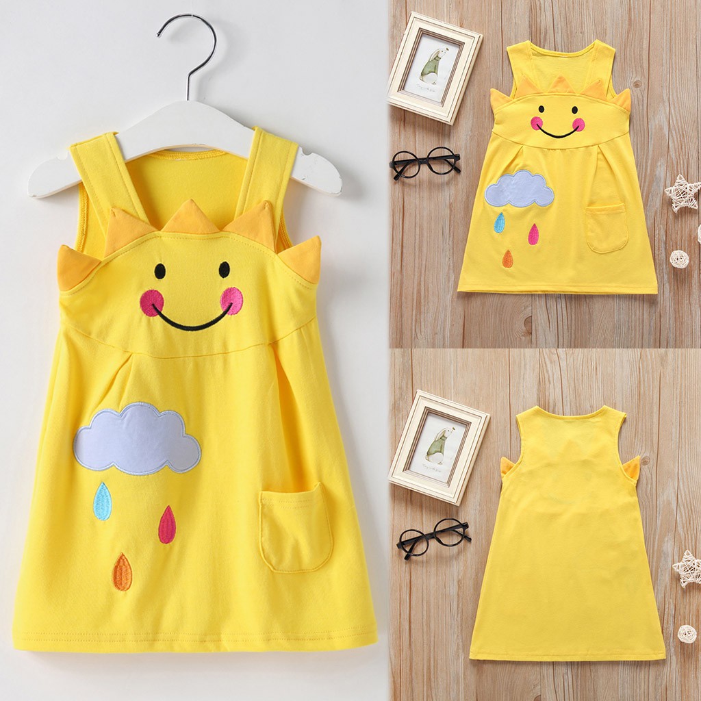 Dress Tanpa Lengan Motif Print Kartun Matahari + Awan untuk Perempuan | Shopee Indonesia