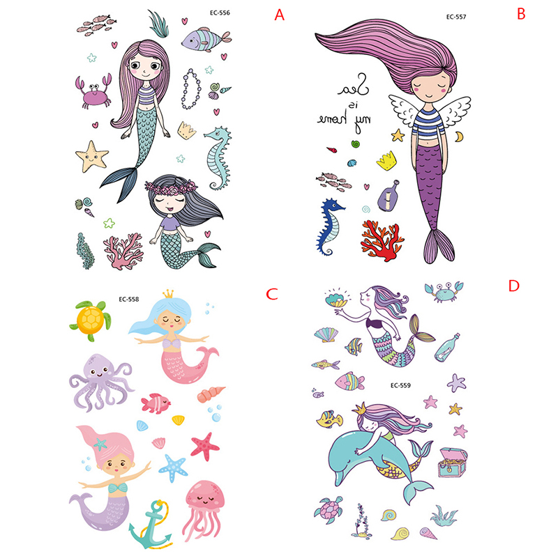 Ali) Stiker Tato Temporer Gambar Kartun Mermaid Tahan Air Untuk Anak-Anak | Shopee Indonesia
