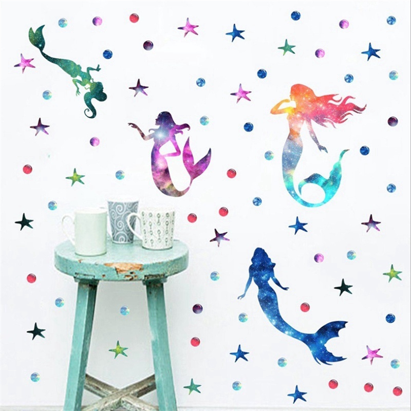Stiker Dinding Bahan Pvc Mudah Dilepas Gambar Kartun Mermaid Untuk Dekorasi Rumah | Shopee Indonesia