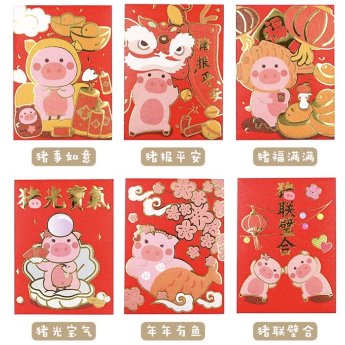 Kreatif babi tahun babi bentuk lucu kartun Lee amplop merah warna tas hadiah amplop merah ratus yuan | Shopee Indonesia