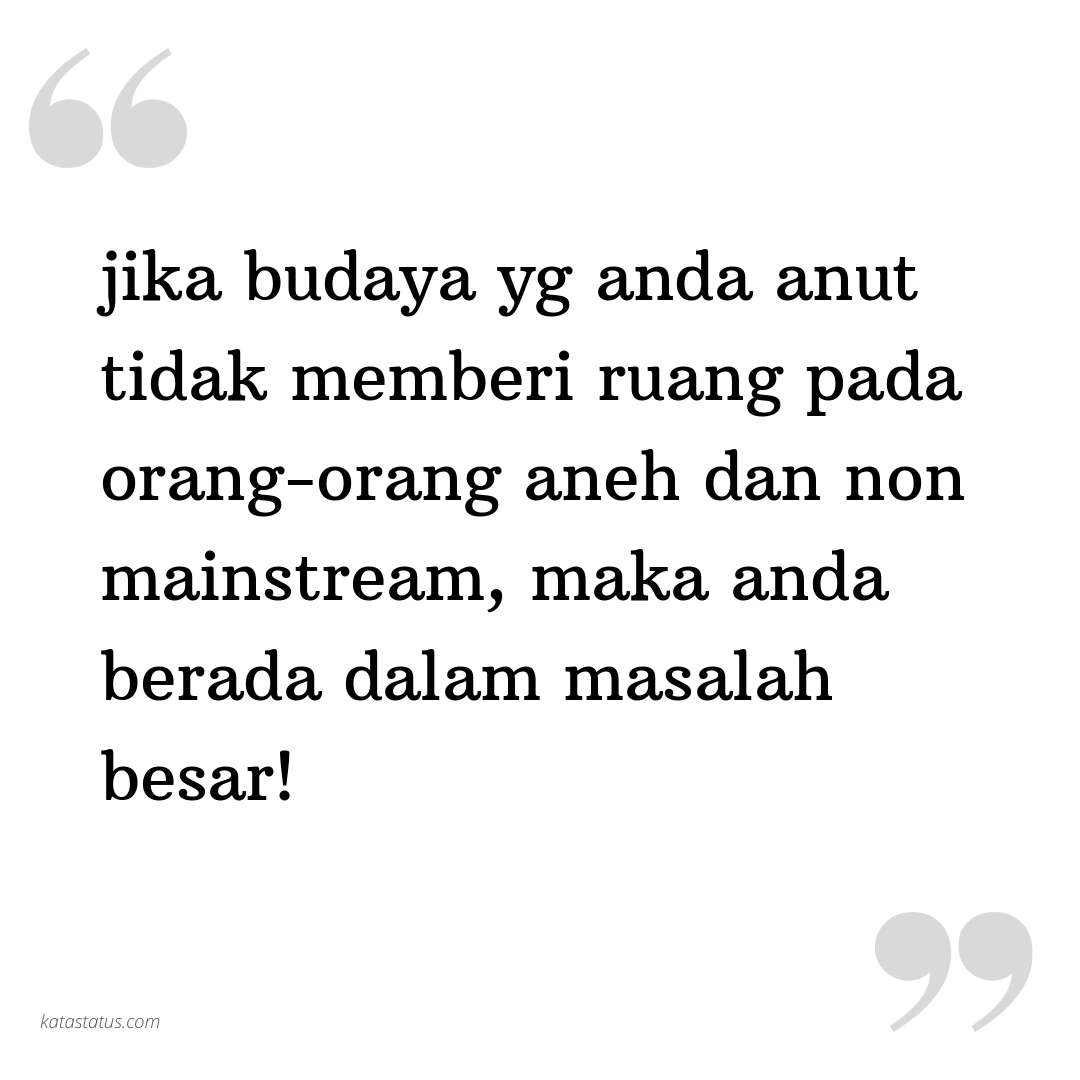 Kata Status Kata Bijak Islami: jika budaya yg anda anut tidak memberi ruang pada orang-orang aneh dan non mainstream, maka anda berada dalam masalah besar! - KataStatus.COM