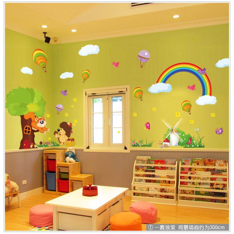 Super kartun tata letak ruang kelas stiker dinding surga hewan TK stiker besar a | Shopee Indonesia