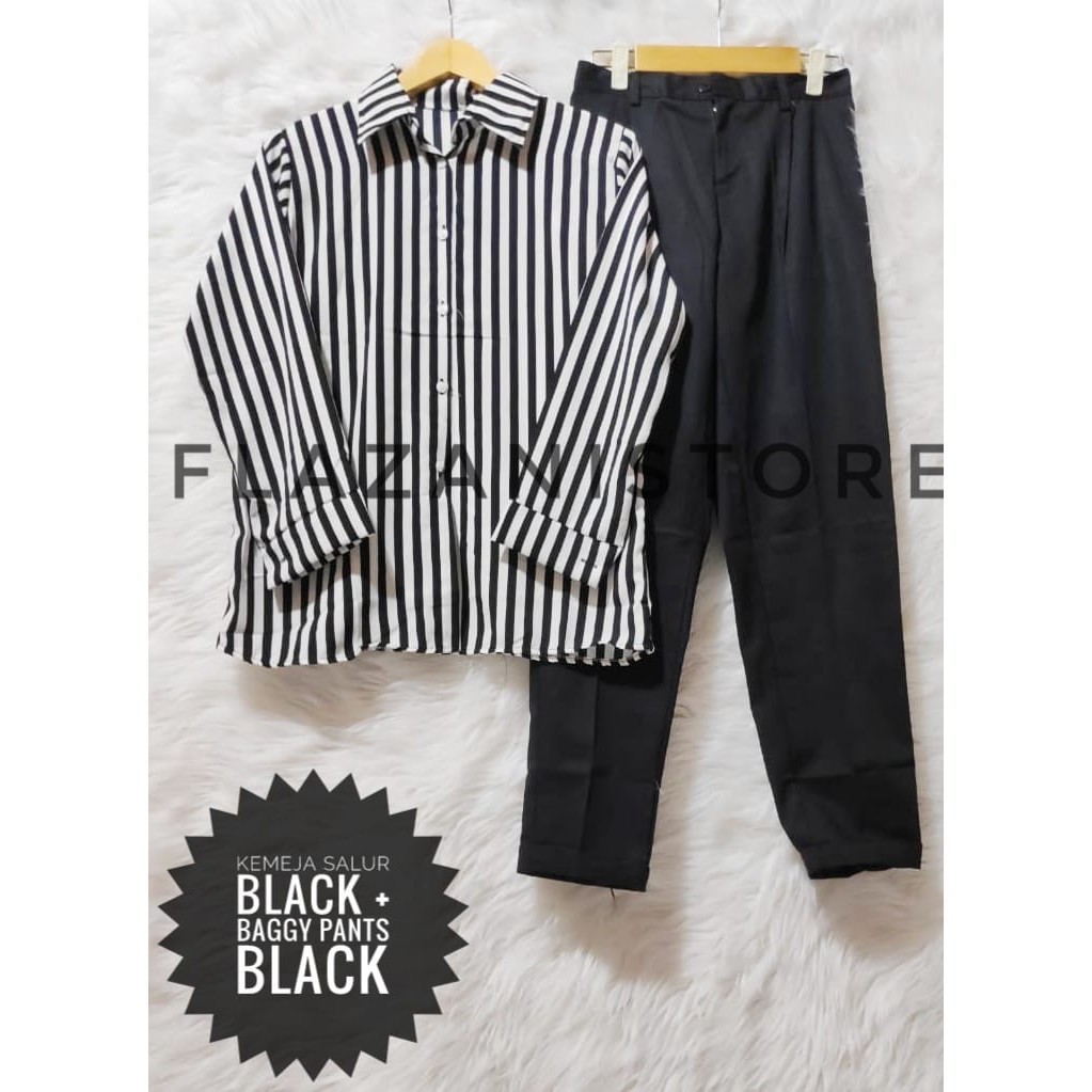 SATU SETELAN BAJU KEMEJA HITAM/BLACK MONALISA DAN/FREE CELANA BAGGY STICK PANTS Cahaya Marcket Store | Lazada Indonesia