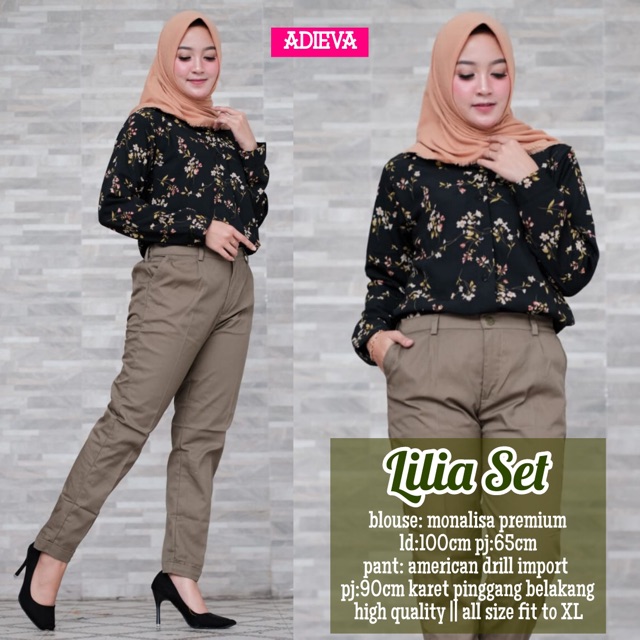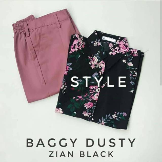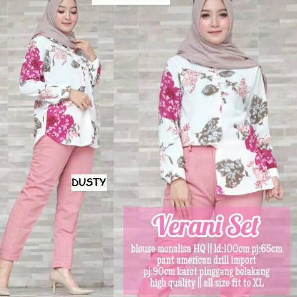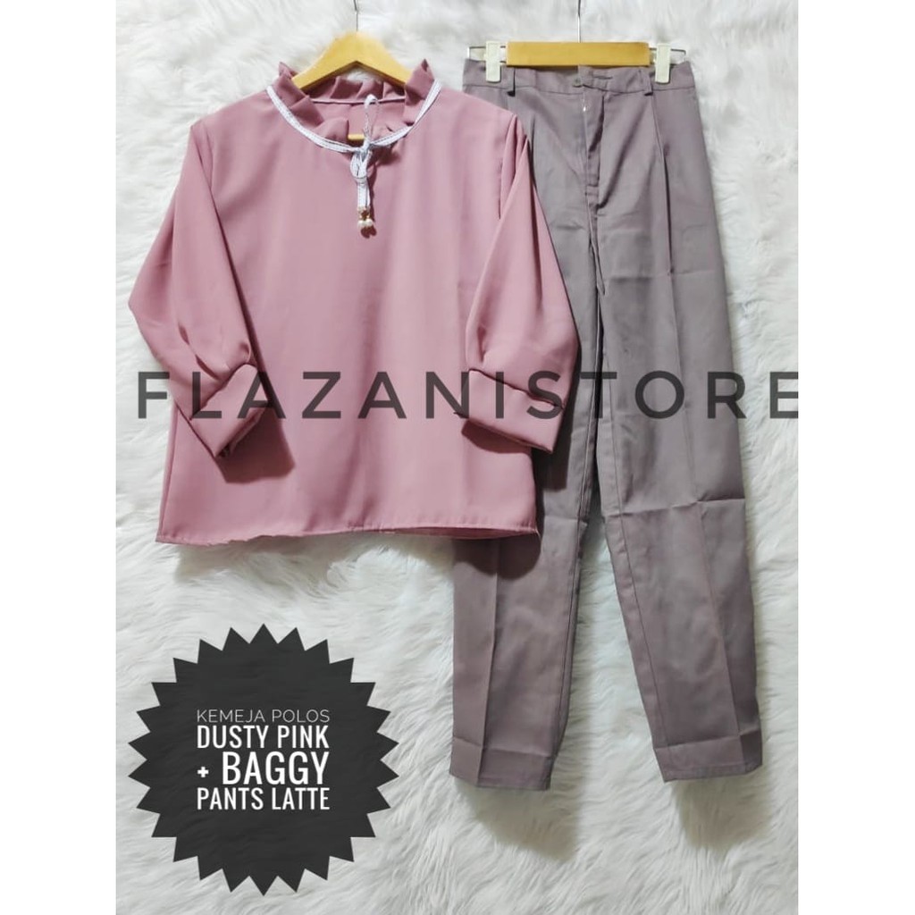 Setelan Monalisa Ori BLOUSE MUTIARA POLOS DUSTY dan Celana Baggy Pants American Drill | Shopee Indonesia