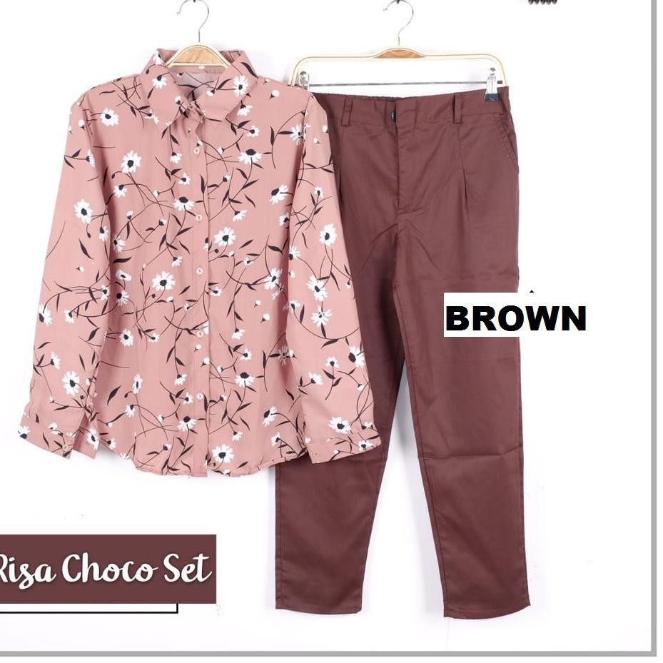 Setelan Kemeja Monalisa Motif “SUNRISE MOCCA” dan Celana Baggy Pants | Shopee Indonesia