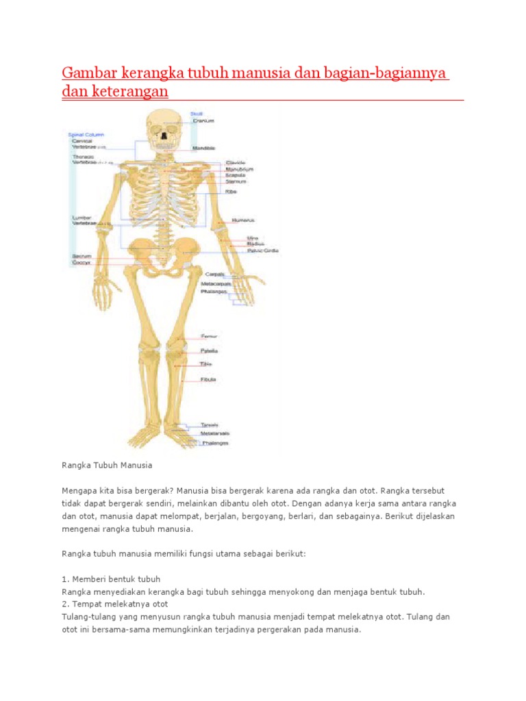 Bagian Bagian Rangka Tubuh Manusia dan Fungsinya Lengkap dengan Penjelasan – Pelajaran Sekolah Online