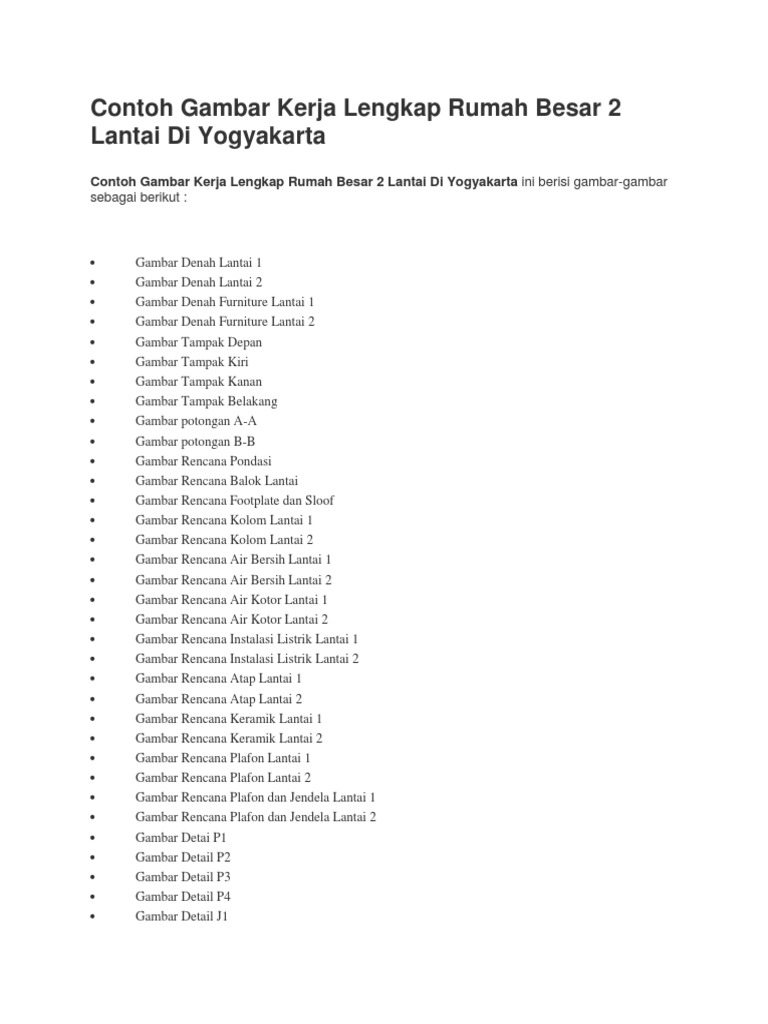 Contoh Gambar Kerja Lengkap Rumah Besar 2 Lantai Di Yogyakarta