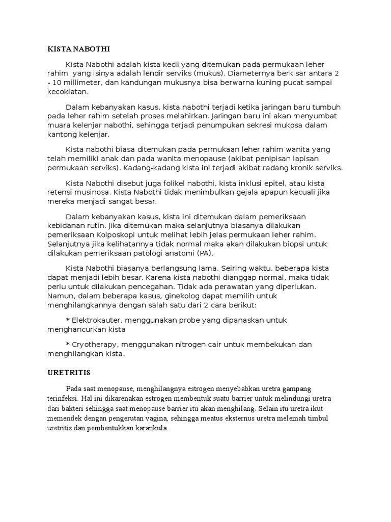 Kista Nabothi Dan Uretritis