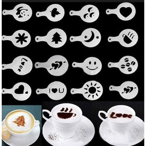 JUAL PENCETAK GAMBAR KOPI / COFFEE ART 16 PCS (1 SET ISI 16 PCS DENGAN GAMBAR BERBEDA) | Shopee Indonesia