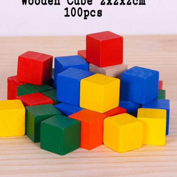 Z0 Mainan Montessori Balok Kubus 2x2x2cm isi 100 Wooden Cube ' | Shopee Indonesia