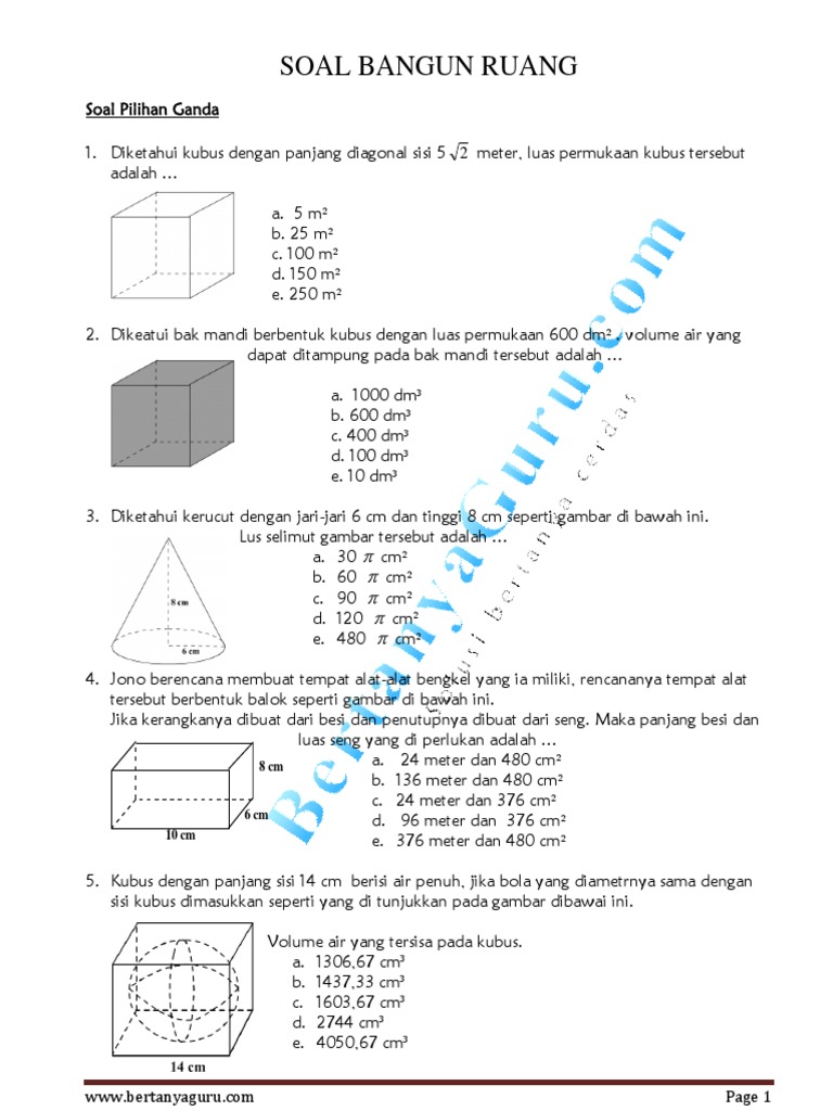 Soal Matematika Kelas 5 SD Materi Bangun Ruang Kubus dan Balok Lengkap dengan kunci Jawaban - Contoh RPP SD dan Soal SD