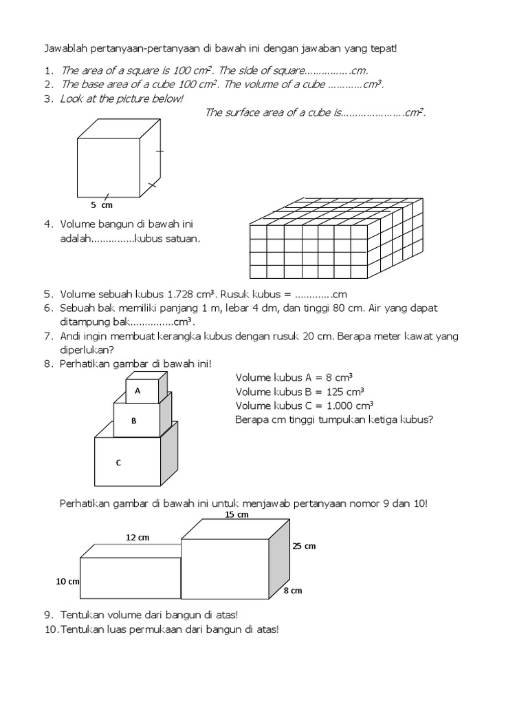 Soal Matematika Kelas 5 Sd Bab 5 Kubus Dan Balok - ProProfs Quiz