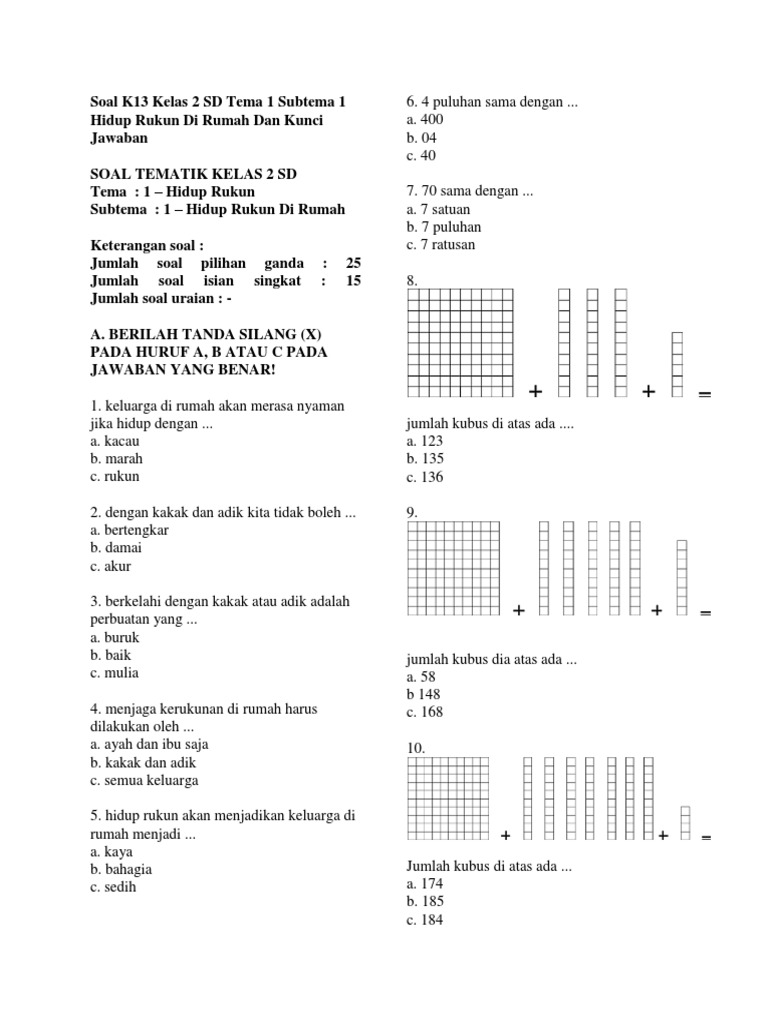 Soal K13 Kelas 2 SD Tema 1 Subtema 1 Hidup Rukun Di Rumah Dan Kunci Jawaban
