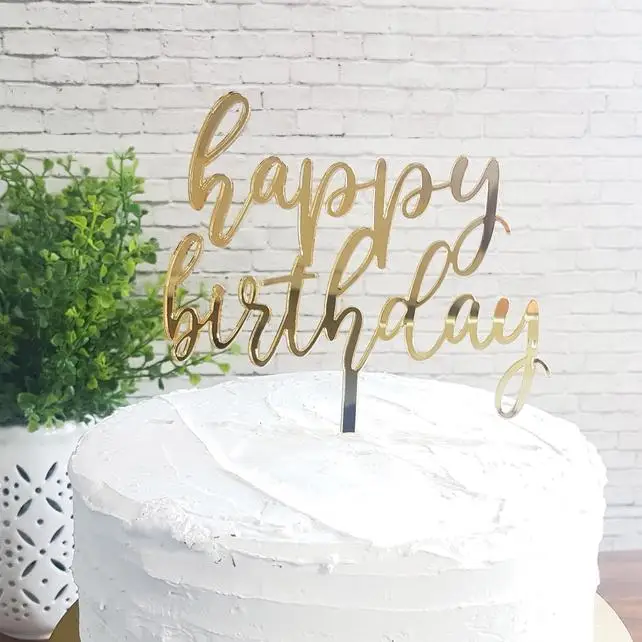 Kayu Selamat Ulang Tahun Cake Topper Dekorasi Putih/Hitam/Glod/Perak Warna Akrilik Puncak Kue Hadiah Stand Perlengkapan|decor white|decorative cake toppersdecorative decorative - AliExpress
